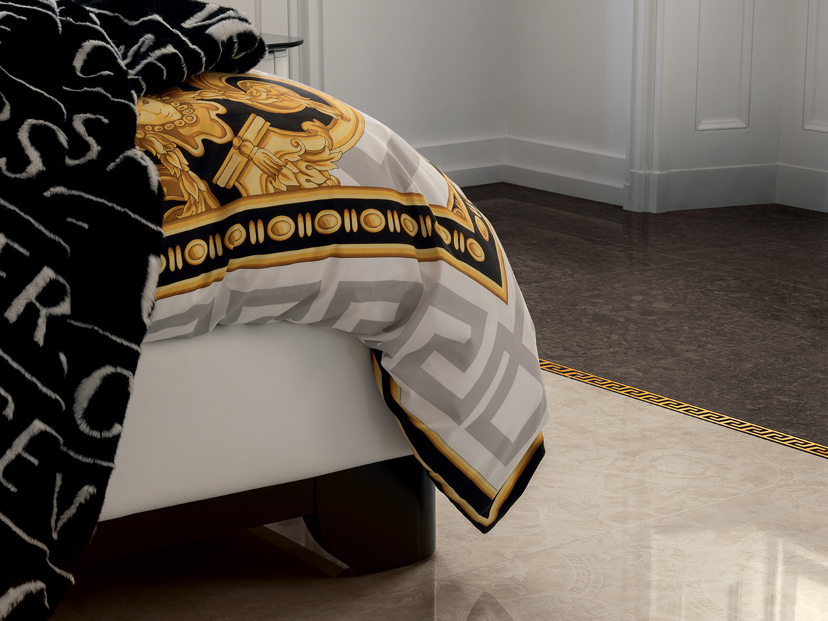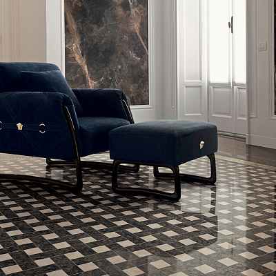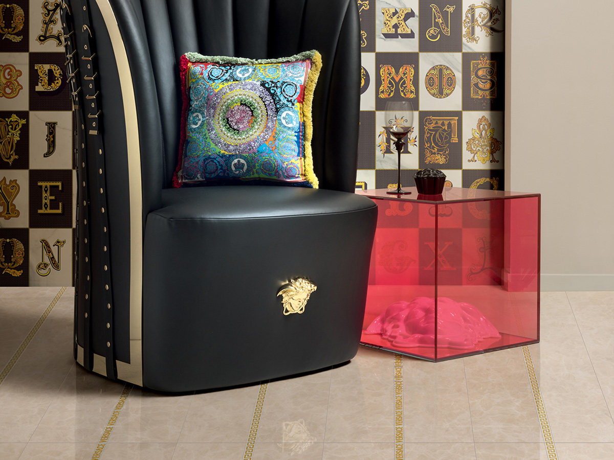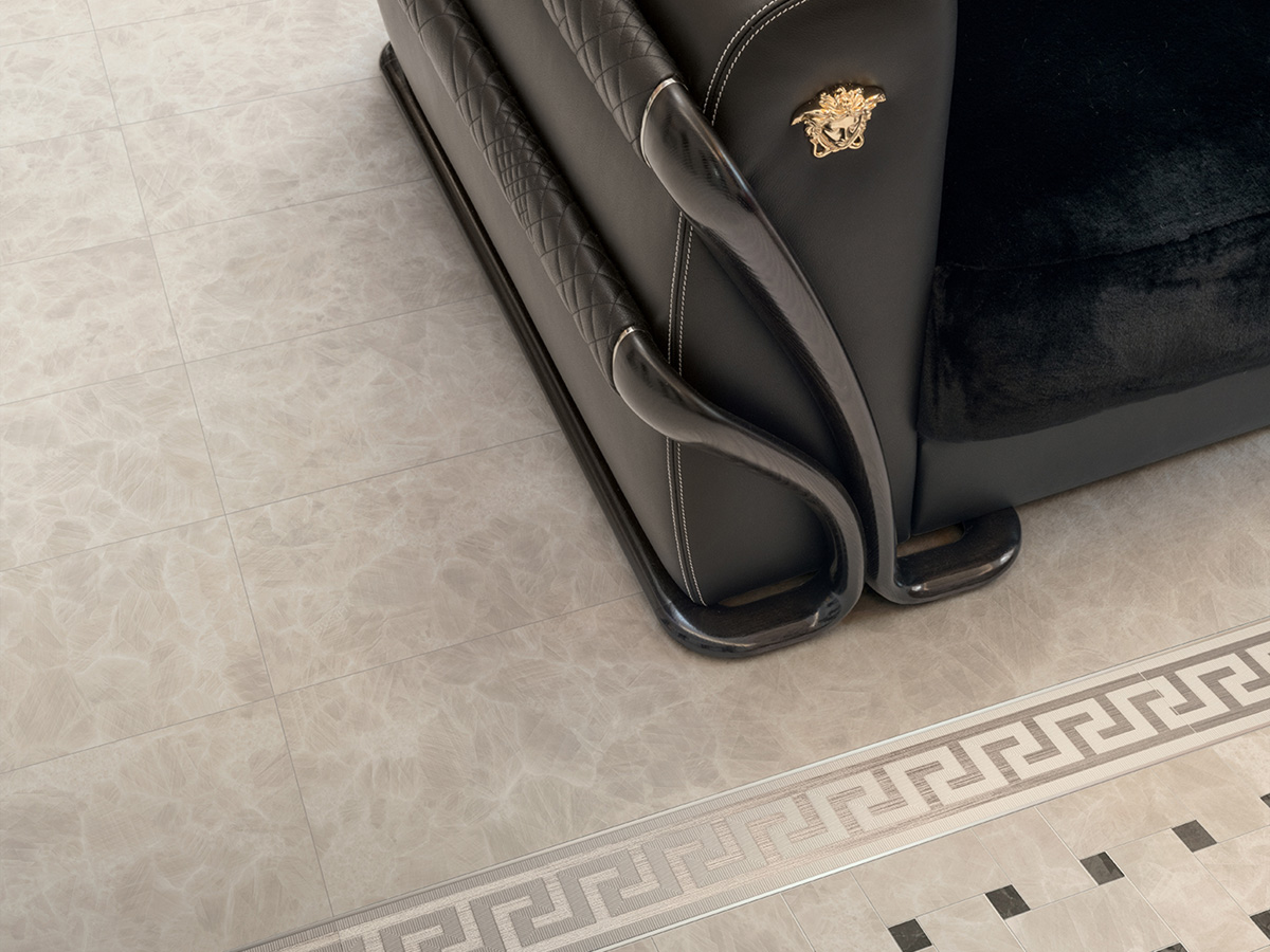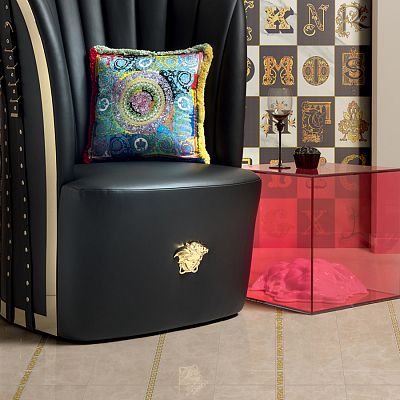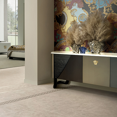 Коллекция керамогранита и керамических декоров для стен и пола Meteorite от Versace с имитацией натурального камня идеально подходит для современных премиальных интерьеров. Красочные декоры дополняют крупноформатные плиты и придают интерьеру законченный вид. Интерьер от Версаче подчеркнет вашу индивидуальность и без слов расскажет о высоком статусе.